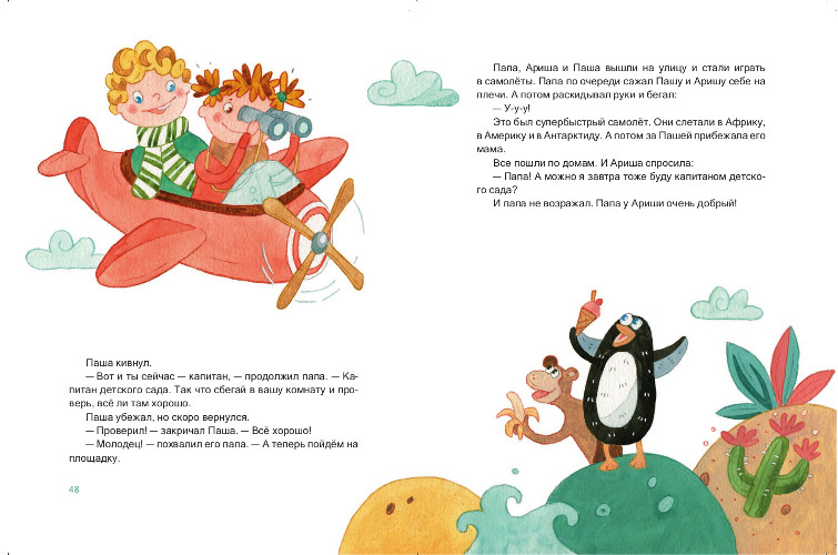 «Капитаны детского сада» — это самая ранняя из моих книг. Когда-то я стала придумывать истории для девочки Ариши — дочки моих друзей. Постепенно они превратились в сборник рассказов о жизни маленькой детсадовской группы. В группе всего шесть ребятишек и одна воспитательница, — зато игр сполна на всех! Тем, кто только собирается в садик, книжка расскажет, что это такое. А с теми, кто уже ходит в детский сад, можно обсудить, что и как там происходит. Маленький секрет от воспитателей: книжные имена легко заменить на имена детей, которые слушают книгу.